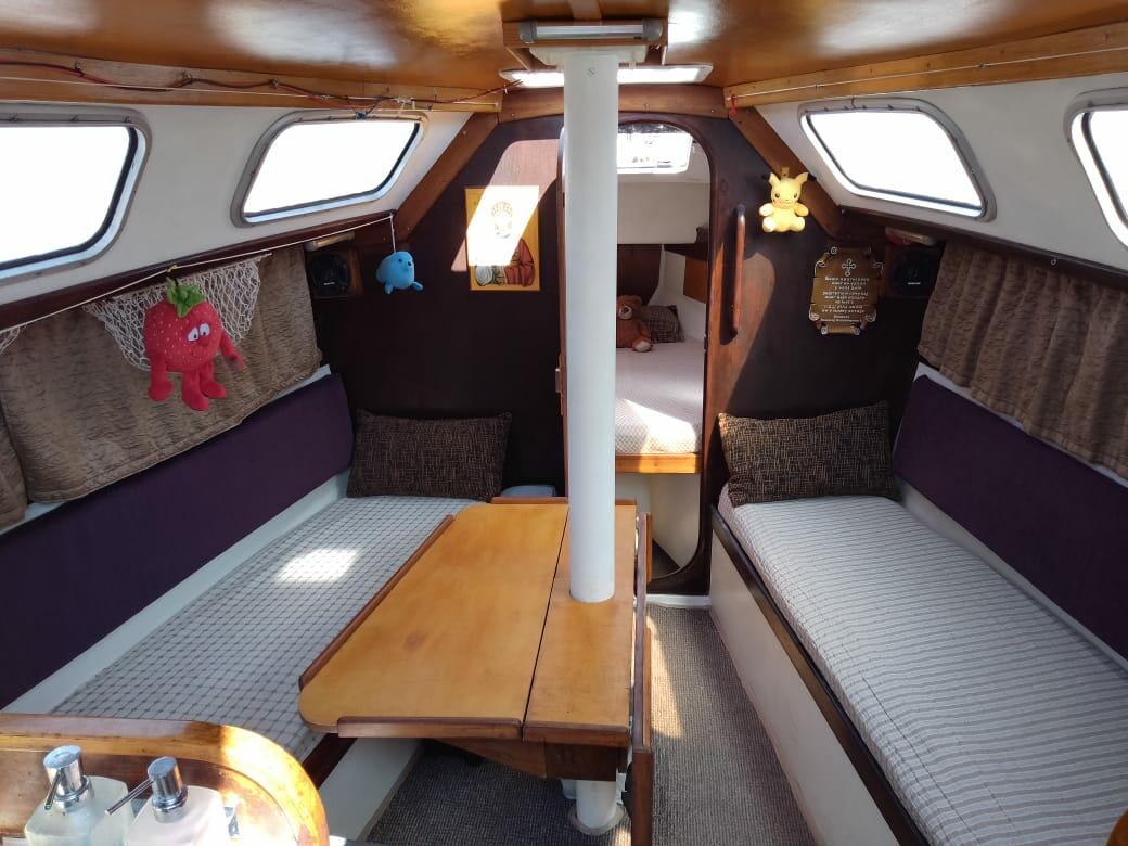 Яхта имеет две отдельные полноценные каюты, (кормовая и носовая) и одна общая кают-компания с раскладным столиком, средиземноморский кокпит, штурвал, в кормовой части площадка для купания с душем, отдельный гальюн с душем, оборудованный бойлером. Прямой вал с двухлопастным винтом. Яхта оборудована двумя танками для пресной воды по 100 л. За время эксплуатации яхты проведены следующие мероприятия: